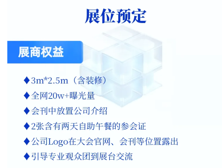 參展享有露出機(jī)會(huì),包括展示、會(huì)刊特殊宣傳、公眾號(hào)特殊宣傳、專題直播宣傳、會(huì)議會(huì)展宣傳等。